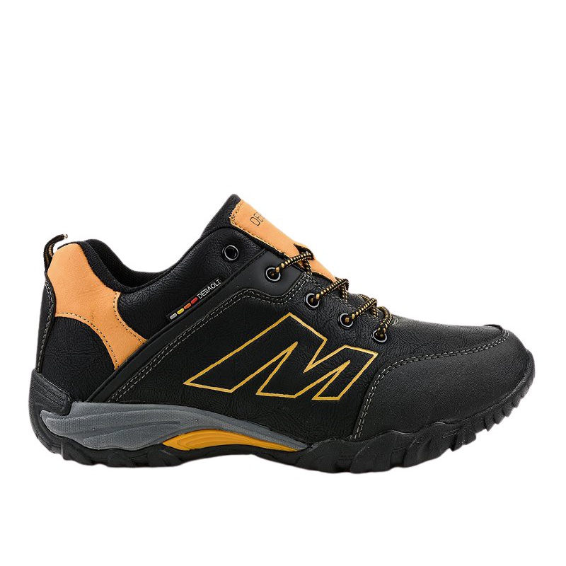 Niiden mustan värin ansiosta ne sopivat täydellisesti mihin tahansa tyyliin, ja koristeelliset vaalean oranssit lisäkkeet antavat niille modernin luonteen. Päällisen etuosassa on käytännölliset nauhat, jotka mahdollistavat oikean säätämisen jalkaan ja varmistavat mukavuuden pitkien vaellusten aikana.