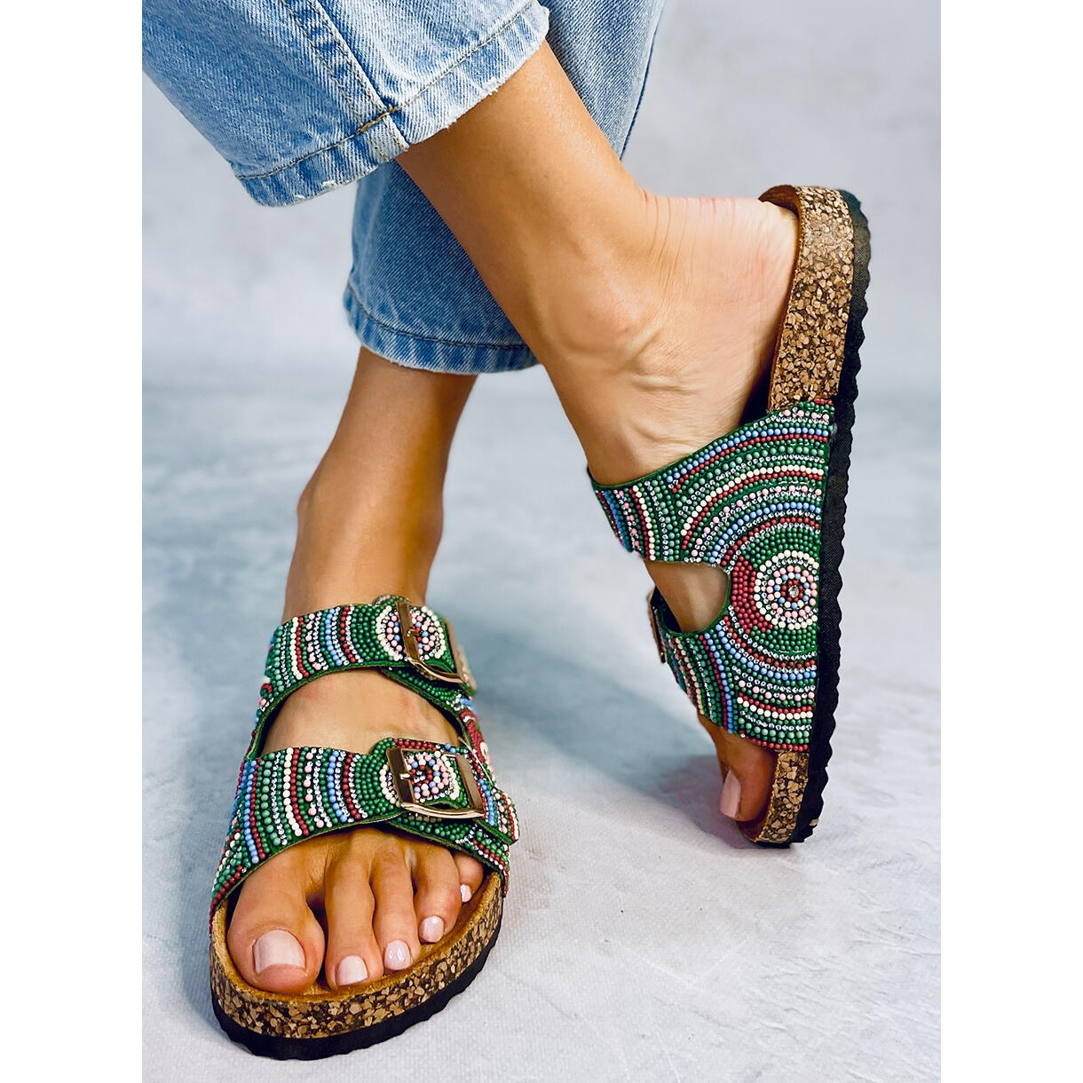 Kesä, mukava ja täynnä luonnetta - Naisten yhteenveto Seatar Adaor Greenistä on täydellinen valinta lämpimiin päiviin. Korkkipohja, jolla on matala alusta (noin 3 cm), varmistaa vakauden ja keveyden, ja moniväriset helmet yhdistettynä kiiltäviin zirkoneihin lisää loman, etnisen viehätysvoiman (hallitseva kuvio: atsteekki).