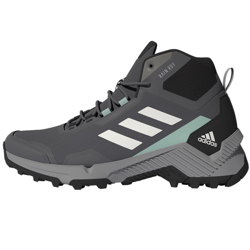 Adidas Eastrail 2 R.Rdy GY4177 kengät - Harmaa naisten vaelluskengät yhdistäen urheilun suunnittelun toiminnallisuuteen. Malli, jolla on korkeampi ja klassinen nauhoitus, varmistaa jalan vakaan pitämisen polulla ja kaupunkialueella, ja esteettinen, hillitty harmaa viimeistely valmistajan näkyvällä logolla korostaa urheilullista hahmoa.