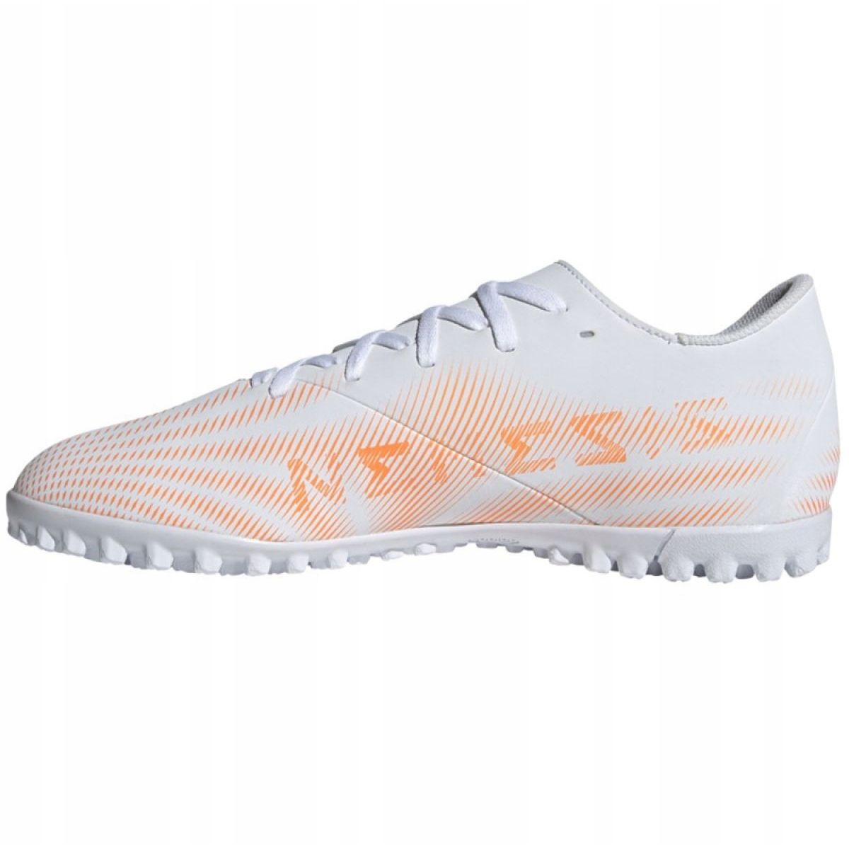 Adidas huolehti asianmukaisesta nauhoituskiinnityksestä, jonka avulla voit helposti säätää kenkiä yksilöllisiin tarpeisiisi. Nämä nurmet on sovitettu leikkimään keinotekoisilla pinnoilla, ja niiden moderni valkoinen ja oranssi muotoilu herättää huomion ja erottuu joukosta.