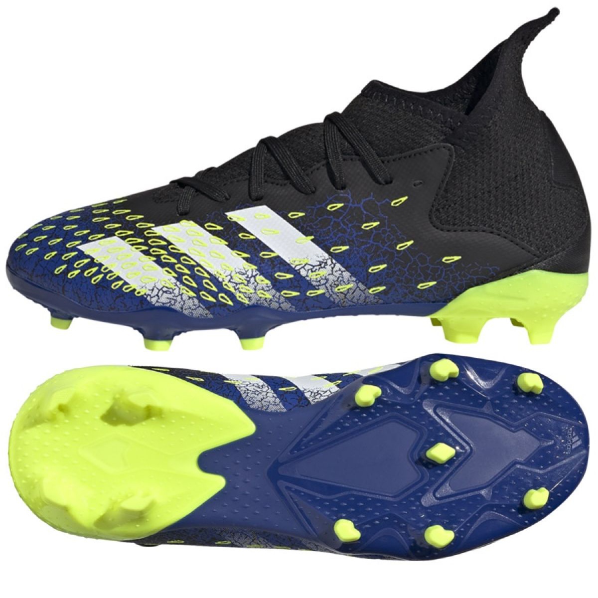 Yksityiskohdat: Adidas Predator Freak.3 Fg Jr FY0613 jalkapallokengät valkoinen, musta, kuninkaallinen musta