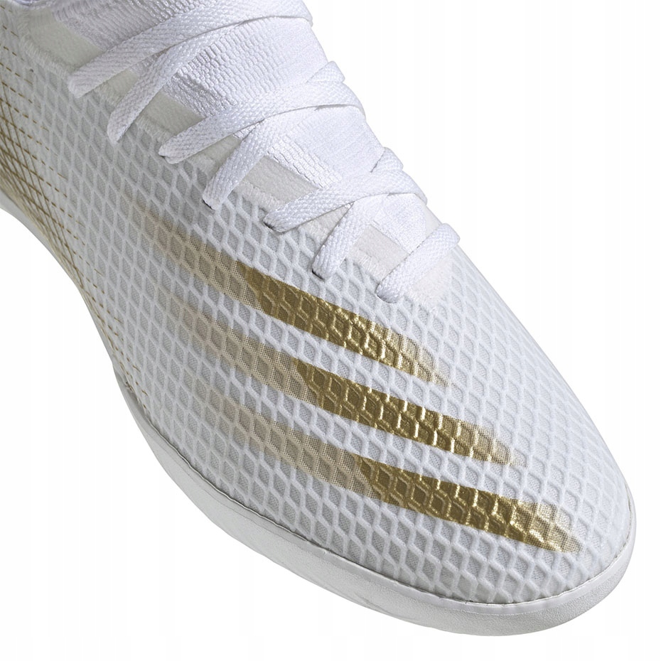 Valkoiset adidas X GHOSTED.3 In EG8204 jalkapallokengät ovat täydellinen valinta jokaiselle jalkapallofanille, joka arvostaa sekä tyyliä että suorituskykyä urheiluhallissa. Nämä Inflight Pack -mallistoon kuuluvat miesten sisäkengät ovat tyypillisiä epäsymmetrisillä nauhoituksilla, jotka lisäävät pallon pomppimisen voimaa ja mahdollistavat voimakkaita laukauksia.