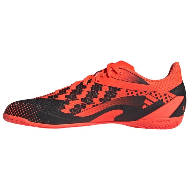 Kengät ovat saatavilla energisen oranssin värisenä punaisilla aksenteilla, mikä tekee niistä erottuvan kentällä. Kantapään jäykistys lisää lisäksi mukavuutta ja tukea intensiivisen harjoittelun tai ottelun aikana.