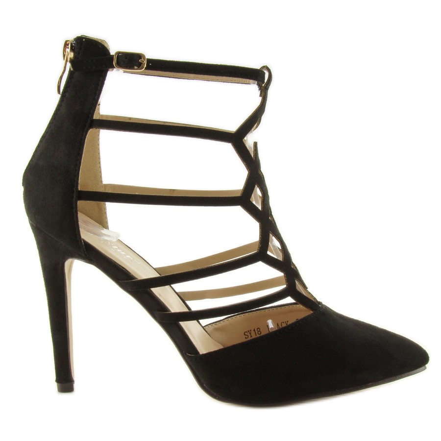 Pumput erottuvat alkuperäisestä muotoilustaan jalkapohjassa olevien ristikkäisten hihnojen ansiosta, jotka eivät vain näytä kauniilta, vaan myös tukevat jalkaa erinomaisesti. Täydellinen erityistilaisuuksiin, iltaretkiin tai tyylikkäisiin kokouksiin - SY18 black on ehdotus naisille, jotka haluavat yhdistää mukavuuden muodikkaan tyylikkyyteen.