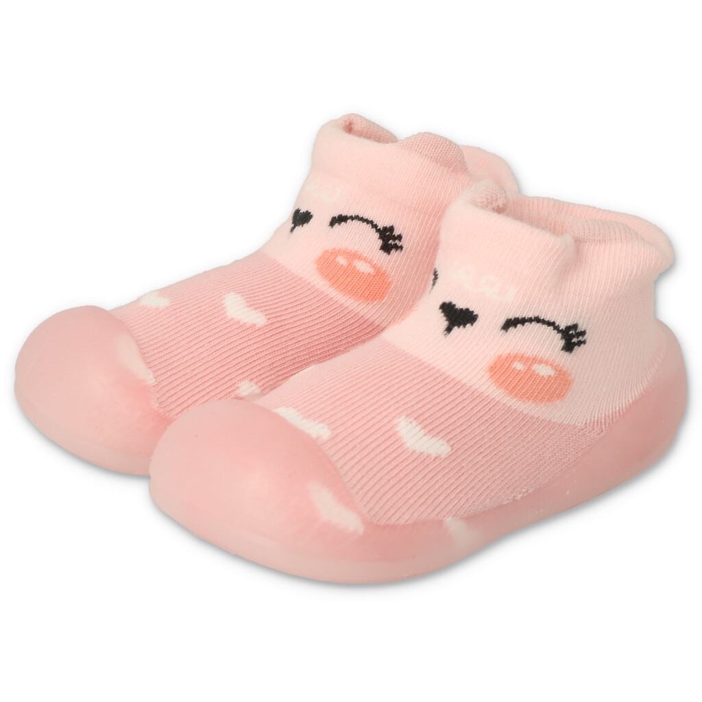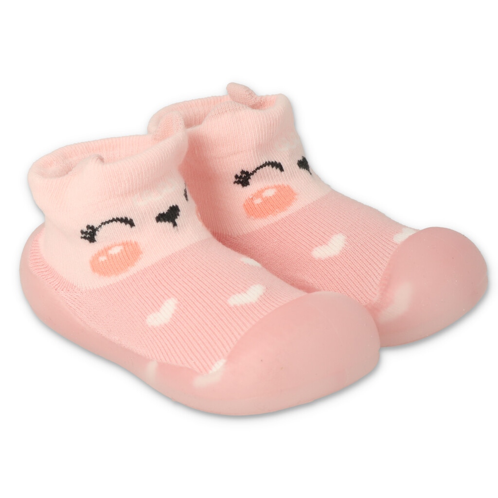 Nämä kävelykengät koostuvat joustavasta sukasta, joka peittää jalan täydellisesti, ja luistamattomasta pohjasta, joka takaa vakauden ja turvallisuuden. Niiden hyvin harkittu muotoilu tarkoittaa, että ne eivät kuormita lapsen jalkaa tai paina sitä, mikä on erittäin tärkeää näin varhaisessa kehitysvaiheessa. Kengän muoto varmistaa, etteivät ne luista vauvan liikkuessa, mikä takaa mukavuuden koko käytön ajan.