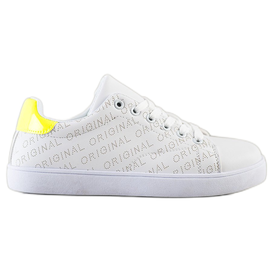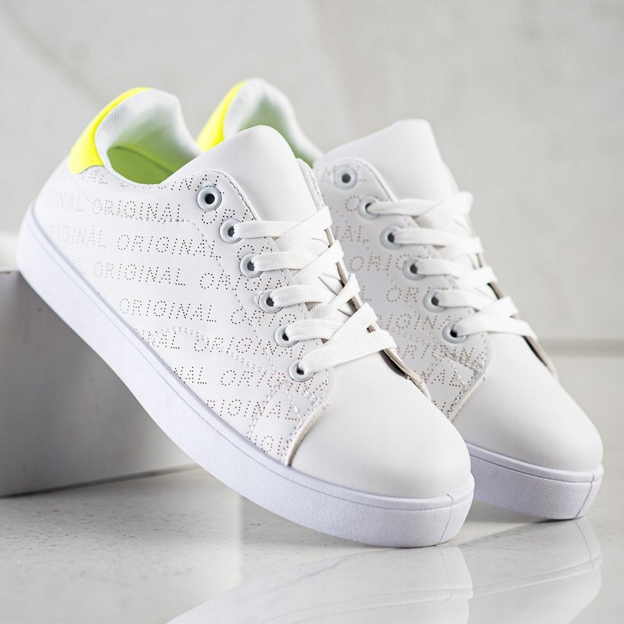 Nämä kengät on valmistettu kiinnittäen huomiota yksityiskohtiin, ja ne houkuttelevat huomiota hienostuneella ulkonäöllään. Nahkaa jäljittelevästä materiaalista valmistettu päällinen ei vain näytä tyylikkäältä, vaan on myös helppo puhdistaa. Valkoiset värit lisäävät rentoa eleganssia, kun taas alkuperäinen kohokuviointi ja kirjoitukset sivuilla korostaa SHELOVET-tuotemerkin luonnetta. Keltainen sisäosa kantapäässä on erityinen, suunnittelija-aksentti.