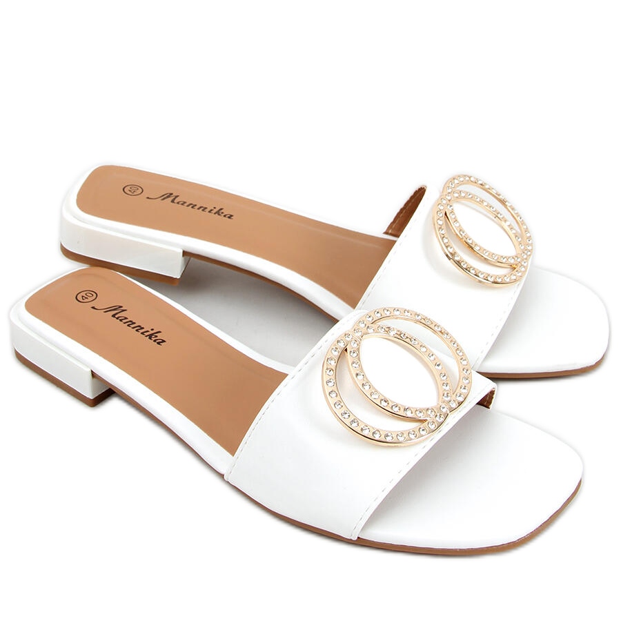 Tutustu Allor Whitein naisten varvastossoihin, jotka ovat täydellinen yhdistelmä tyyliä ja mukavuutta. Tämä malli litteällä pohjalla, jossa on leveä olkahihna ja silmiinpistävä kivikoriste, on klassikko, joka ei koskaan mene pois muodista. Valkoiset Allor-varvastossut vastaavat täydellisesti nykytrendejä ja varmistavat samalla käyttömukavuuden.