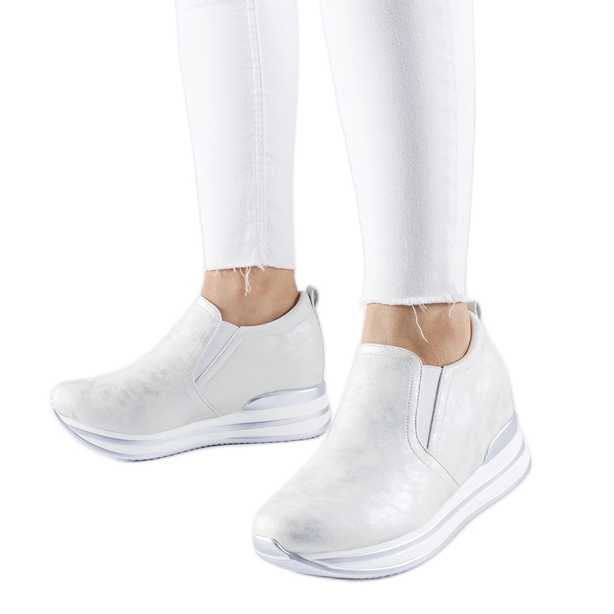 Alquippa hopeiset kiilalenkkarit ovat täydellinen valinta naisille, jotka arvostavat muodikkaan muotoilun ja käyttömukavuuden yhdistelmää. Universaalin hopean värin ja slip-on-muodon ansiosta nämä kengät sopivat täydellisesti sekä kävelyyn kaupungilla että iltaretkelle. Ne ovat epäilemättä houkutteleva ja käytännöllinen lisä jokaisen naisen kesävaatekaappiin.