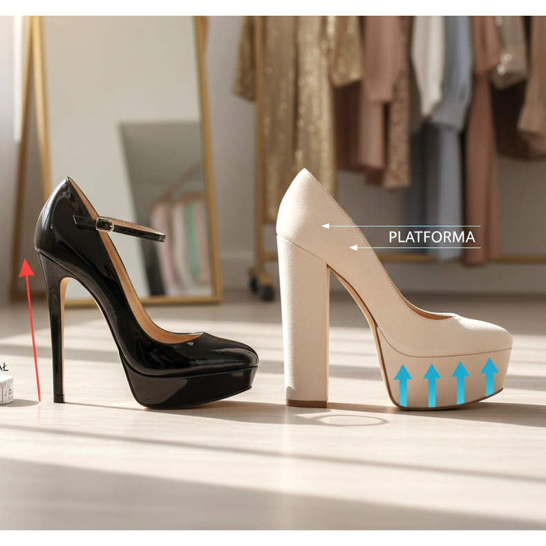 Ennen kuin aloitamme vertailun, on tärkeää ymmärtää molempien vaihtoehtojen anatomia. Kantapää on perinteinen kantapään alla oleva korkeus, joka muuttaa jalkasi ja säären kulmaa. Alusta on lisäys sekä kantapään että jalkaterän alla - koko jalka. Molemmat vaihtoehdot saavat sinut ylös, mutta ne tekevät sen eri tavoin. Kantapää koskettaa sääri- ja jalkalihaksia enemmän, kun taas alusta levittää painon suuremmalle pinnalle. Tämä tarkoittaa, että korkokengät voivat olla tyylikkäämpiä, mutta alustat ovat mukavampia.