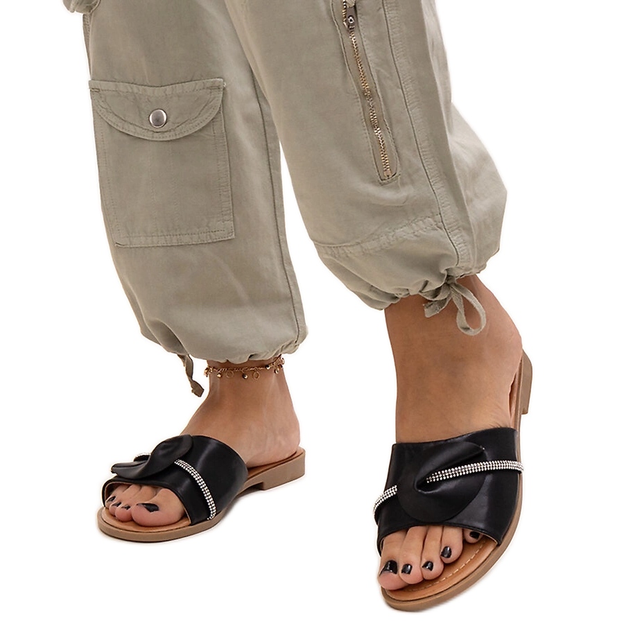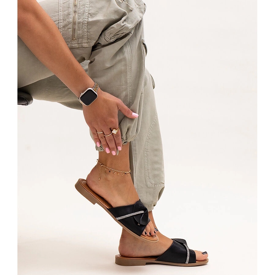 Tapaa Flip Flops, joka on koristeltu vyöllä Amarari -zirkonilla tyylikkäässä mustassa värissä. Se on täydellinen valinta kuumiin kesäpäiviin, yhdistäen muodikkaan suunnittelun ja mukavuuden. Pyöreän varpaiden ja lisätyn rakenteen ansiosta kumiraiteilla, läpän asettaminen ja poistaminen tulee erittäin yksinkertaiseksi.