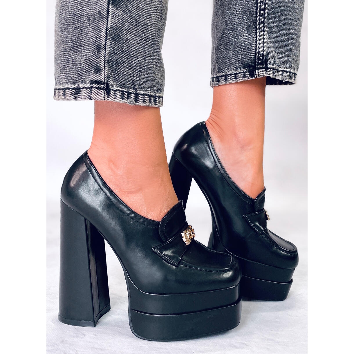 Ambra Black Heels - Musta, tyylikäs ja rohkea. Aidat korkean naisten leveydet (14,5 cm) 5 cm: n alustalla on ehdotus naisille, jotka haluavat lisätä korkeutta ja luonnetta, eivät luopu mukavuudesta. Universal Black -malli, jossa on neliömäinen nenä ja koristeelliset zirkonit, on erinomainen erityistilaisuuksiin ja kaupunkien tyyliin.
