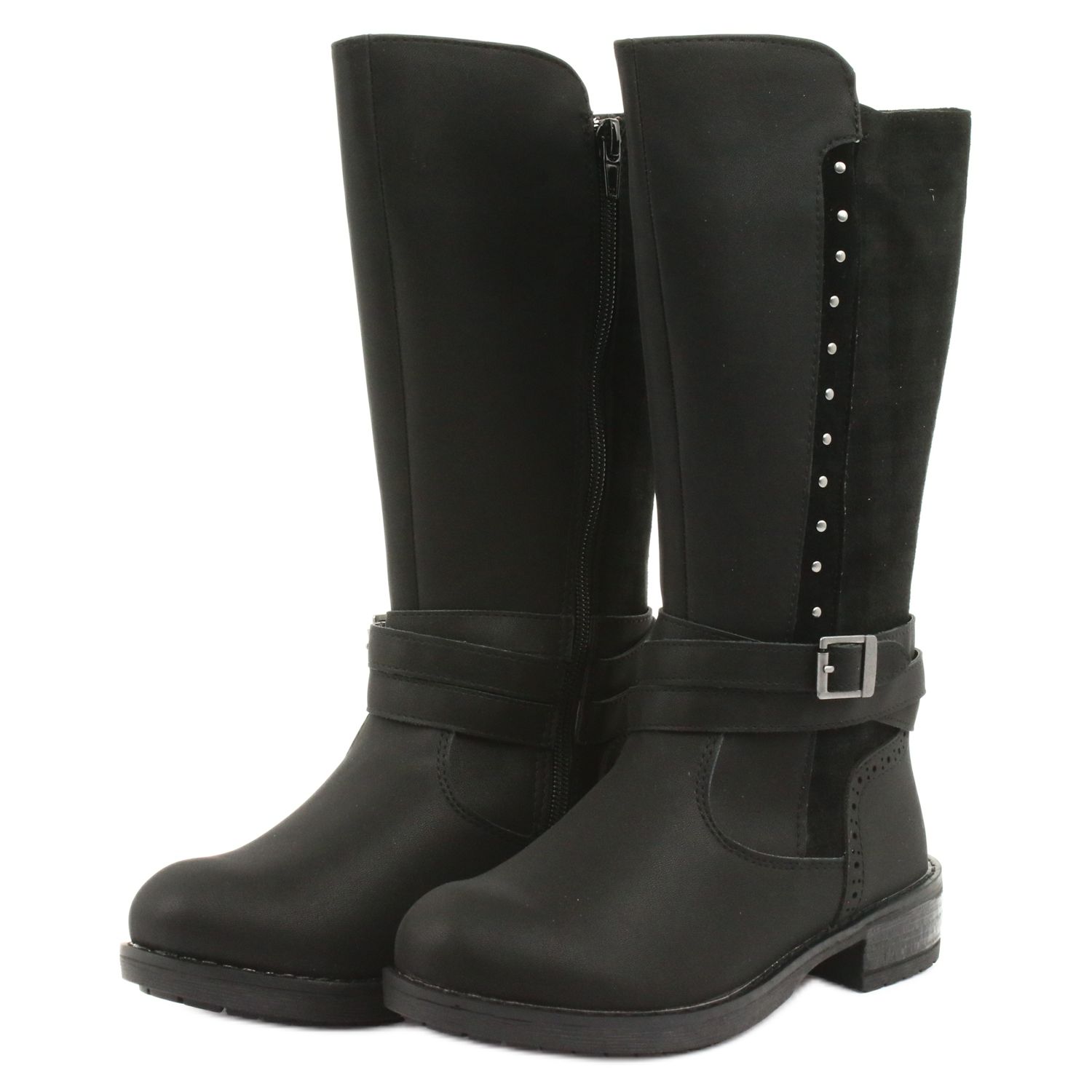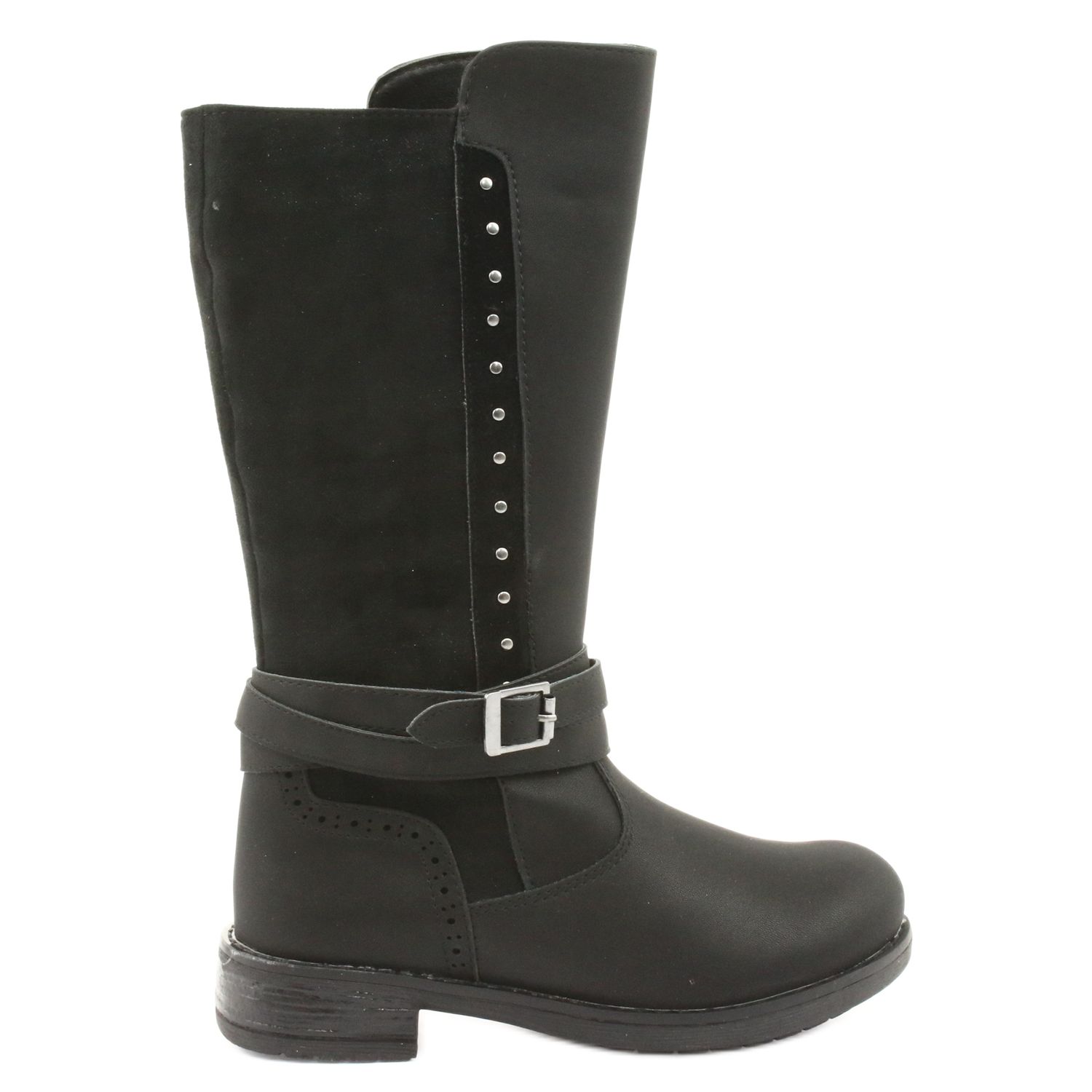 American Club GC31 pitkät saappaat strassilla ovat täydellinen valinta kaikille muodikkaille tytöille, jotka arvostavat sekä tyyliä että mukavuutta. Nämä korkealaatuisesta ekologisesta nahasta valmistetut saappaat erottuvat tyylikkäästä mustan ja harmaan väriyhdistelmästä, mikä tekee niistä yhteensopivia moniin eri tyyleihin.