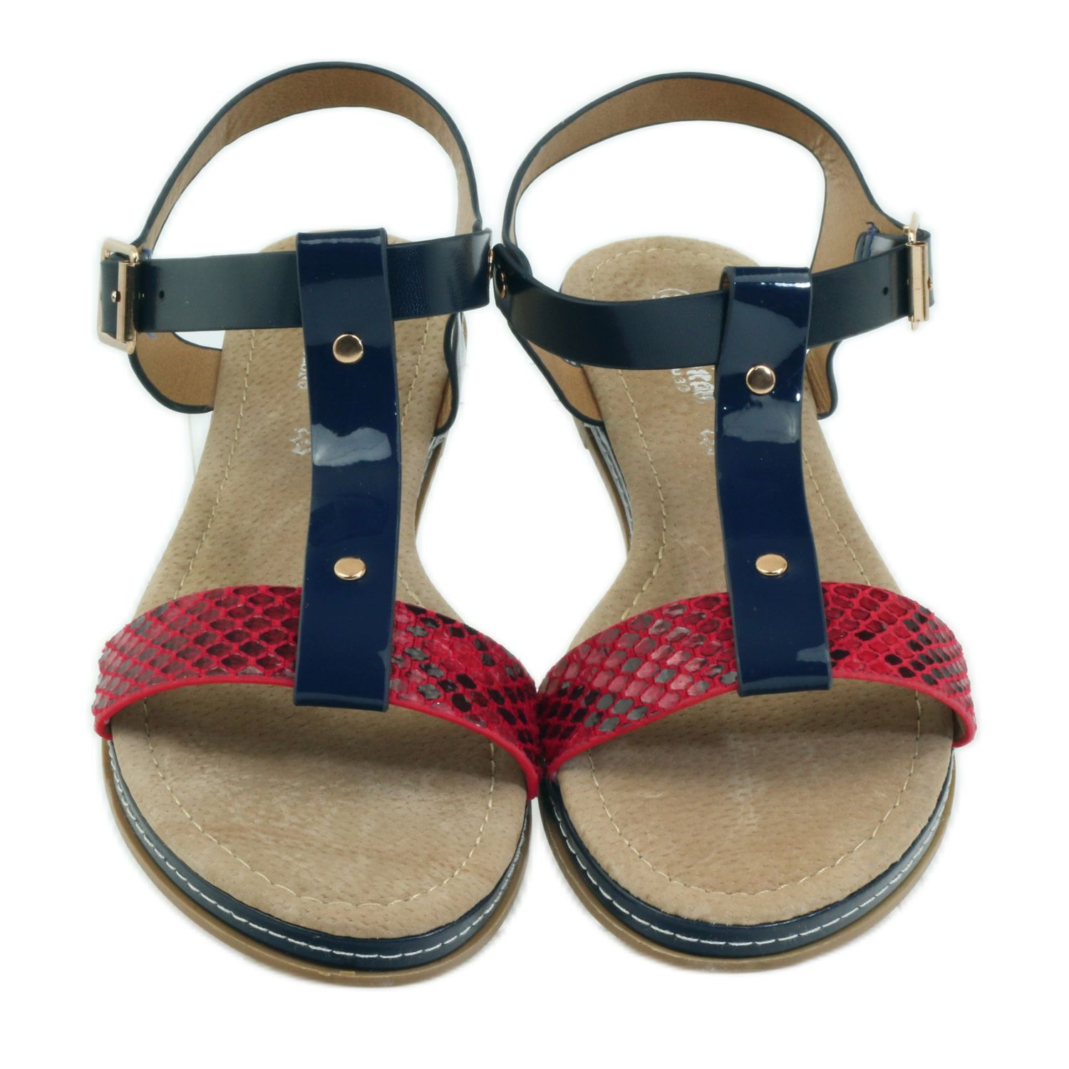 Niiden klassinen muotoilu ilman kärkeä ja litteä 1,8 cm kantapää tekevät sandaaleista paitsi tyylikkäitä, myös erittäin käytännöllisiä jokapäiväiseen käyttöön. Solki varmistaa helpon pukemisen ja riisumisen, ja mielenkiintoinen punaisen ja laivaston värien yhdistelmä luo alkuperäisen ja viehättävän muotoilun.