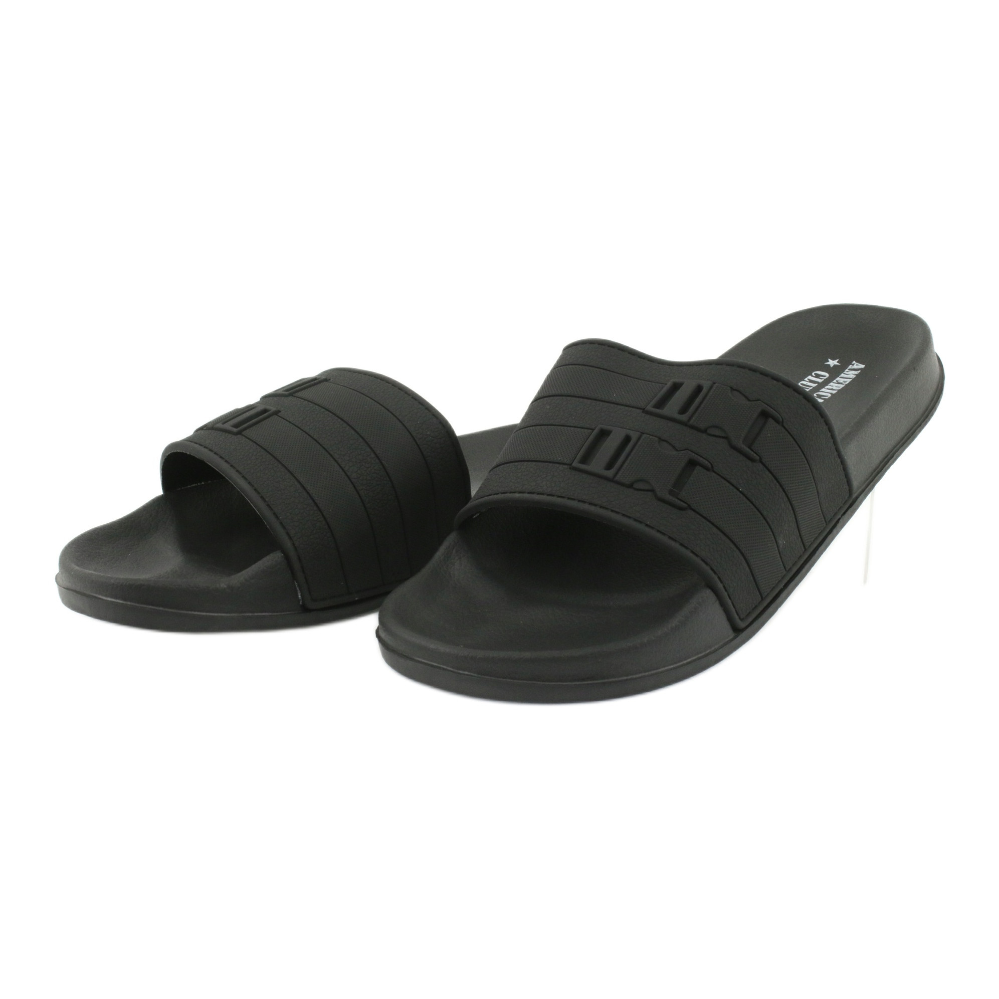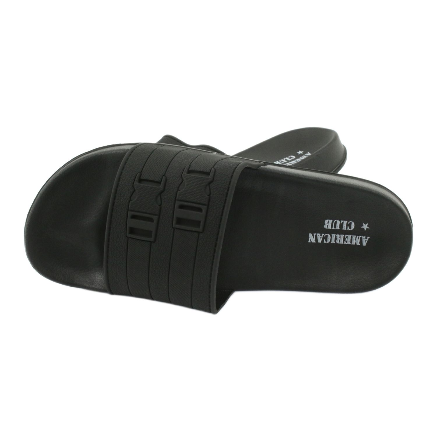 Yksityiskohdat: American Club Amerikkalaiset NH15 miesten kaksiraitaiset uima-altaan tohvelit musta