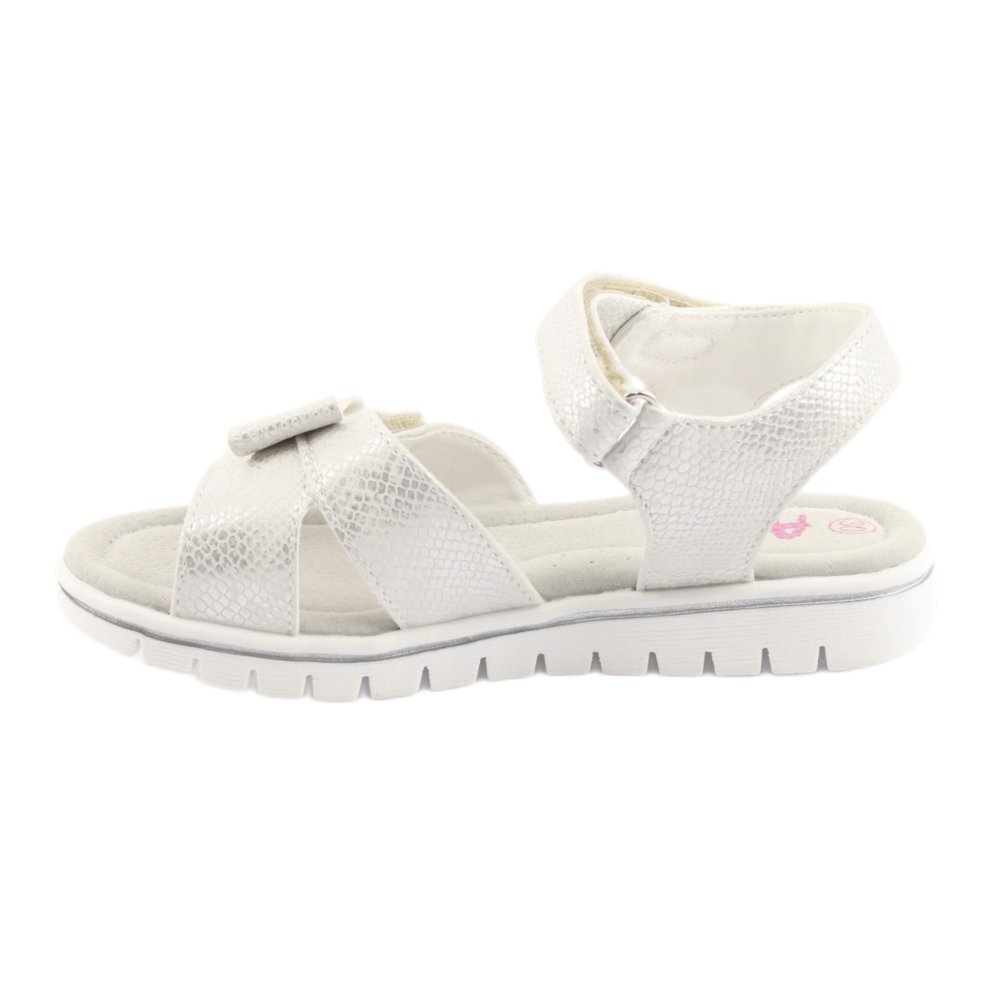 Tyylikkät ja mukavat sandaalit tytöille, jotka erottuvat herkästä keulasta ja valkoisen helmen sävystä. Modernin suunnittelun yhdistelmä toiminnallisilla ratkaisuilla varmistaa mukavuuden koko päivän - täydellisen joka päivä, kouluun ja kesäjuhlia varten.