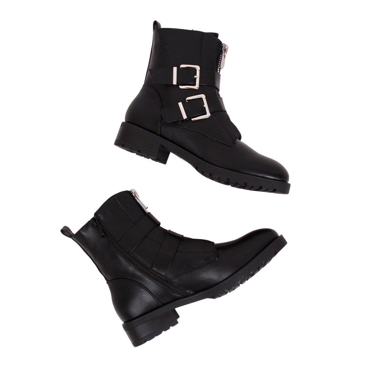 Mustat armeijan saappaat 688-A14 Black ovat täydellinen valinta naisille, jotka arvostavat muodikasta ja samalla mukavaa tyyliä. Nämä vaikuttavat moottoripyörätyyliset kengät herättävät huomiota tunnusomaisten soljen ja etuosassa olevan koristeellisen hopeanvärisen vetoketjun ansiosta, joka lisää niihin omaperäisyyttä. Klassinen musta väri sopii täydellisesti tämän hetken trendeihin, joten nämä saappaat sopivat moniin arkisiin tyyleihin.