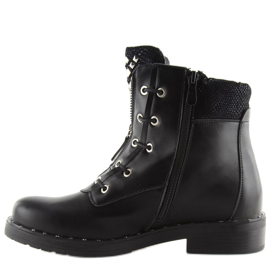 Löydä ainutlaatuinen tyyli mustilla armeijan saappailla BH82-KB mustalla! Nämä ainutlaatuiset naisten grunge-tyyliset litteät saappaat ovat jokaisen muodikkaan naisen ehdoton hankinta. Niiden erottuva koriste-elementti on nastoitettu kieleke, joka lisää rockin luonnetta, ja hopea vetoketju, joka antaa niille modernin ilmeen.