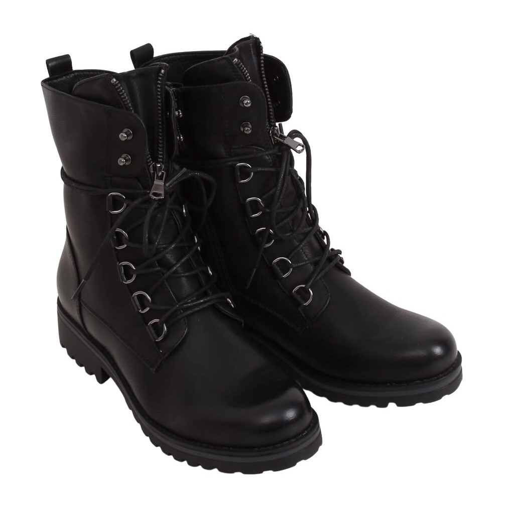 BZ66017-KB Mustat sotilastyöntekijän saappaat ovat pakollinen hankinta jokaisessa muotimallistossa! Näissä naisten nauhoitettavissa nilkkureissa yhdistyvät mukavuus ja tyyli, jotka sopivat täydellisesti tämän hetken trendeihin. Ajattoman muotoilunsa ja suojalla varustetun pohjan ansiosta nämä kengät tarjoavat sinulle sekä turvallisuuden että muodikkaan ilmeen.