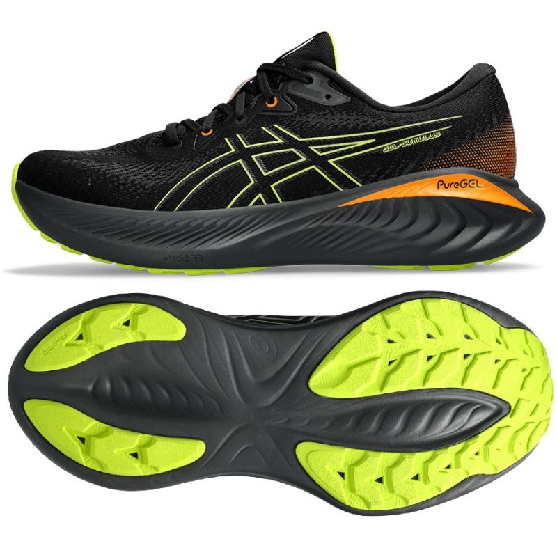 Pohjan rakenteessa käytetty innovatiivinen PureGEL-teknologia tarjoaa erinomaisen iskunvaimennuksen ja tekee jokaisesta askeleesta kevyemmän. Lisäetuna on tyylikäs musta väri oransseilla korosteilla, jotka sopivat täydellisesti urheilulliseen ilmeeseen.