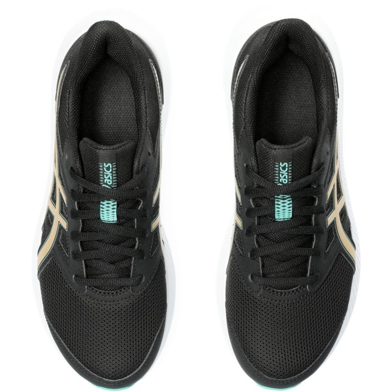 Asics Jolt 4 -kenkiä luonnehtii elegantti musta väri koristeellisilla kultakoristeilla, mikä saa ne näyttämään hyvältä kaikissa urheilutyyleissä. Lisäksi nauhakiinnityksen ansiosta kenkä voidaan säätää käyttäjän yksilöllisiin tarpeisiin, mikä varmistaa vakauden juoksun aikana.