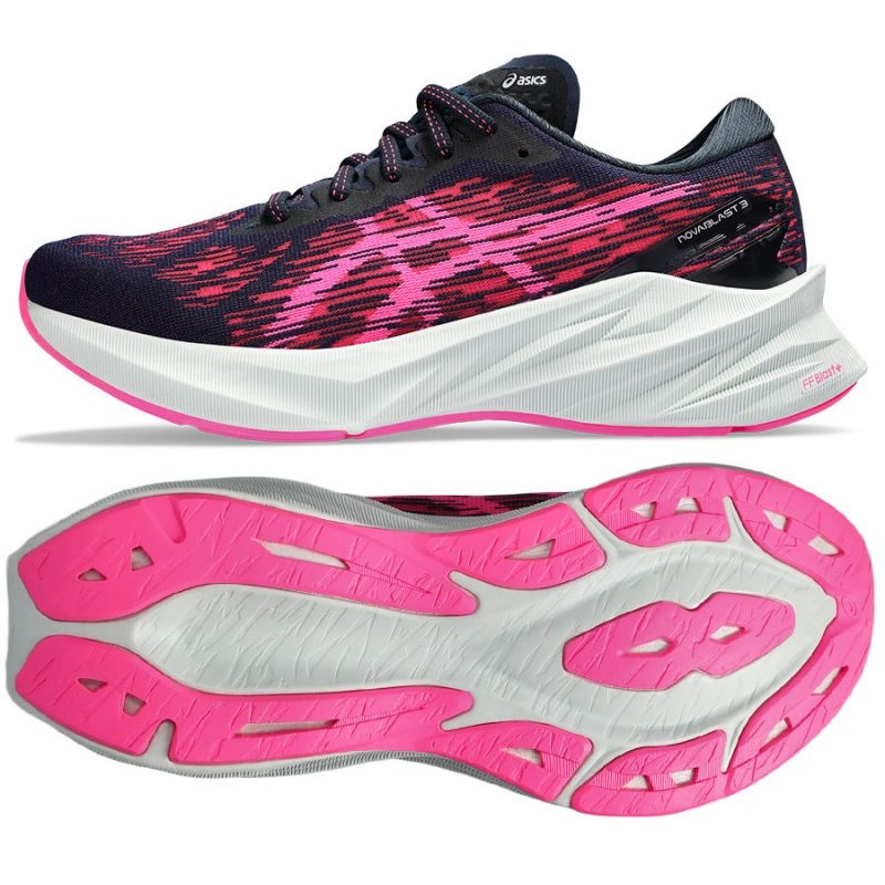 Naisten Asics Novablast 3 W (koodi 1012B288-406) Naisten koodi, joka on suunniteltu koville pinnoille. Matala, pitsi -UP -leikkaus yhdistää tekstiilin vuoren mukavuuden kestävällä, kumipohjaisella - ihanteellinen juoksijoille, joilla on neutraali tai täydentävä jalka.