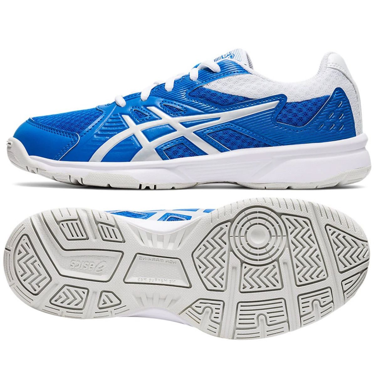 Tutustu Asics Upcourt 3 W 1072A012-406 kenkiin - täydellinen kumppani harjoituksiin ja lentopallo-otteluihin aktiivisille naisille. Näille matalille nauhamalleille on ominaista täydellinen tyylin ja toimivuuden yhdistelmä, ja niiden ainutlaatuinen sininen väri houkuttelee huomiota ja lisää energiaa kaikkiin urheiluasuihin.