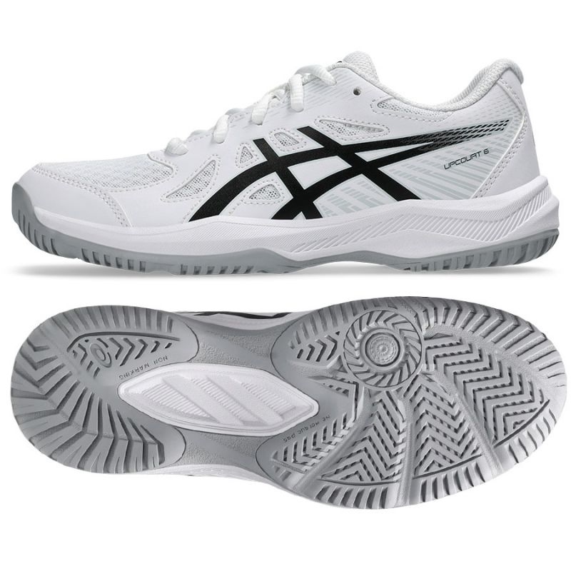 Yksityiskohdat: Asics Upcourt 6 Gs Jr 1074A045 101 lentopallokengät valkoinen