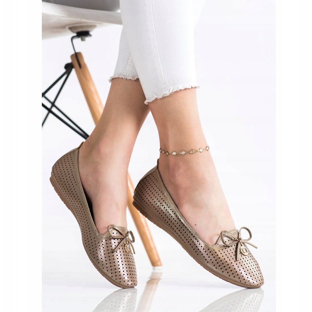 Esittelemme Vincezan Openwork Ballet Flats With a Bows kauniissa beigen ja kullan värien yhdistelmässä. Nämä ovat tyylikkäitä ja käytännöllisiä jalkineita, jotka sopivat hyvin niin arkeen kuin juhlaankin.