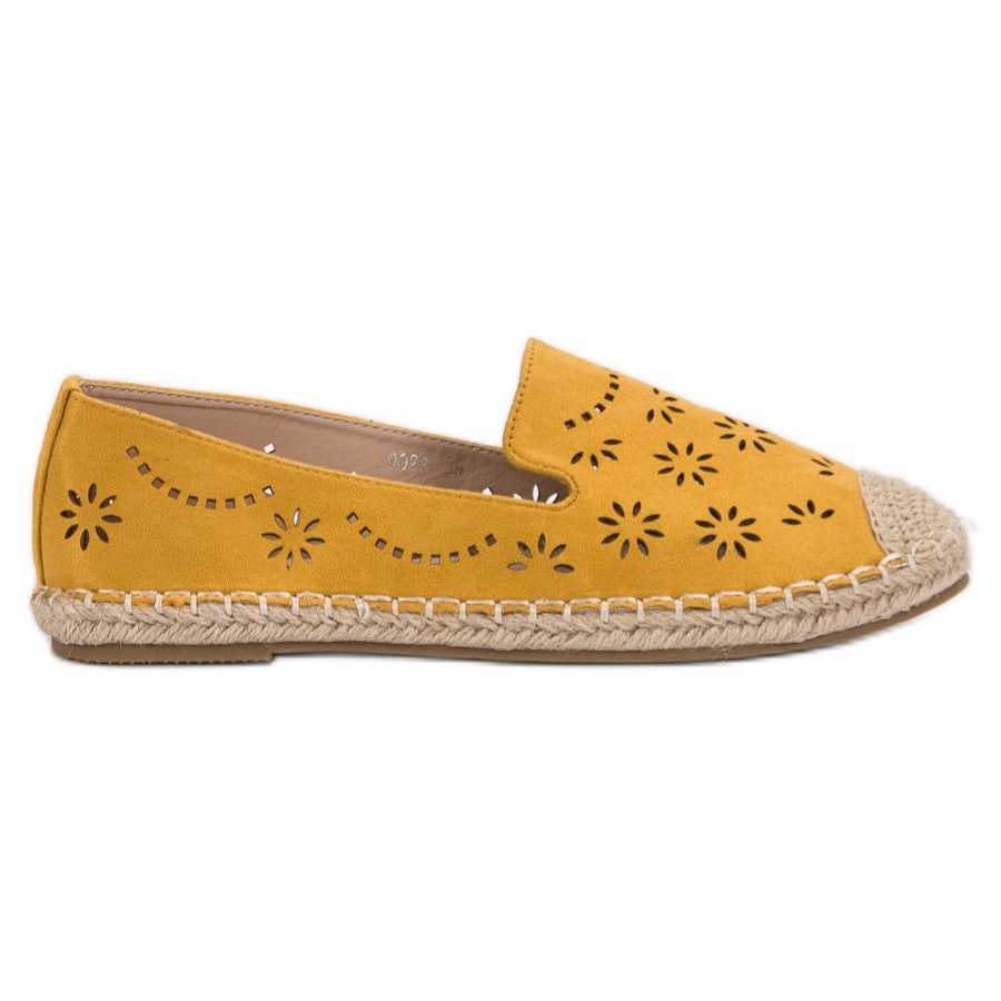 Primavera Openwork Lords keltaisessa sävyssä on täydellinen valinta naisille, jotka haluavat lisätä hieman raikkautta vaatekaappiinsa. Nämä ainutlaatuiset espadrillit erottuvat muodikkaasta harjakattoisesta kuviosta, josta on tulossa todellinen hitti tällä kaudella. Voimakkaan keltaisen värin ansiosta nämä kengät elävöittävät monia tyylejä tuoden keveyttä ja iloisen aksentin arjen asuihin.