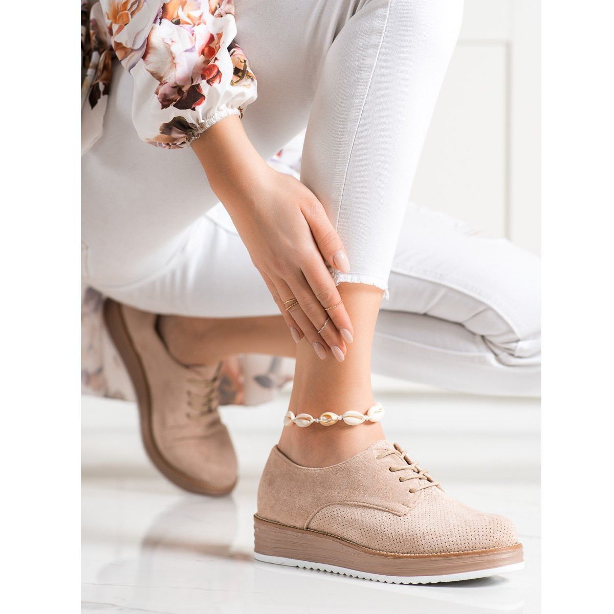 Löydä mukavuus ja tyyli yhdessä Renda-tasokenkien ansiosta! Nämä tyylikkäät beigenväriset kengät ovat täydellinen valinta arkeen ja liike-elämään. Harjattu pinta takaa optimaalisen ilmanvaihdon, mikä tekee niistä täydellisen valinnan lämpimiin päiviin. Matala alusta ei vain lisää mukavuutta, vaan myös hoikentaa ja pidentää jalkoja.
