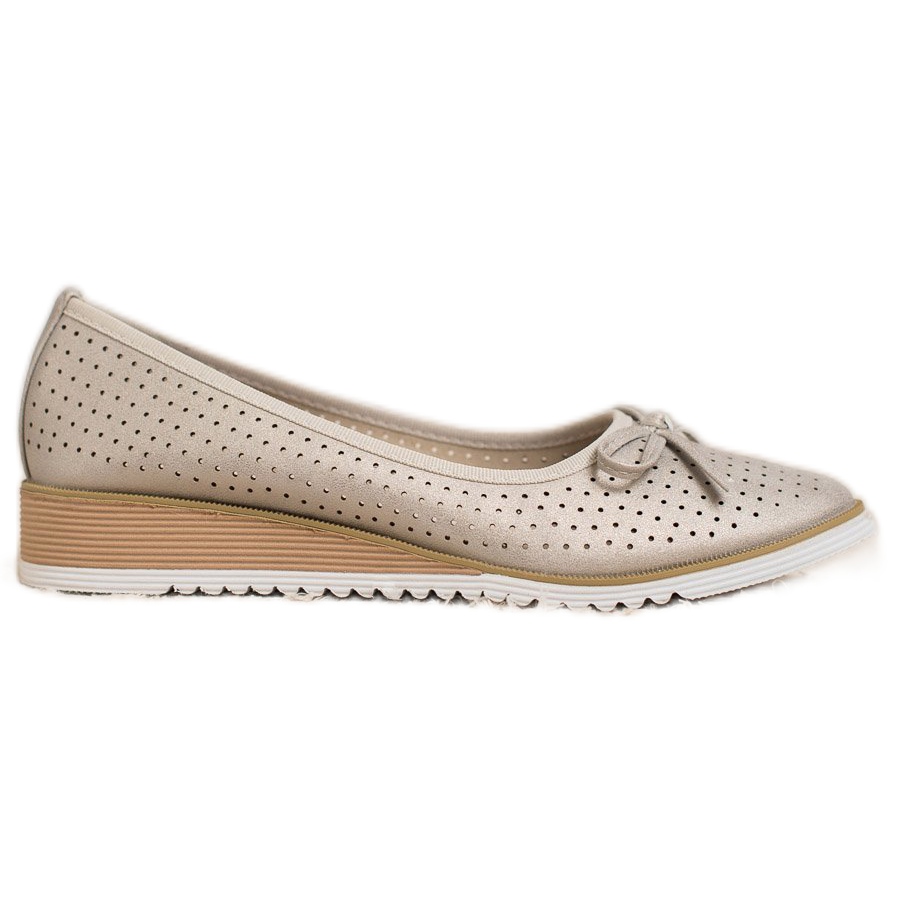 Nämä ovat ainutlaatuisia harjattomia kiilapumppuja tunnetulta Goodin-brändiltä, jotka ilahduttavat elegantilla kultaisella värillään. Nämä kengät ovat täydellinen valinta naiselle, joka arvostaa sekä tyyliä että mukavuutta. Muodikas harjakattoinen kuvio ja viehättävä rusetti lisäävät niihin hienovaraista naisellisuutta, jolloin ne näyttävät upeilta jaloissa.