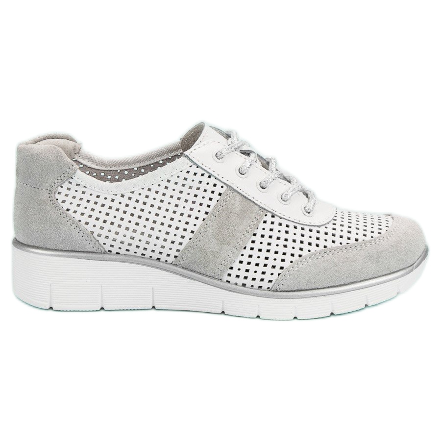 Nämä ovat valkoiset Filippo Openwork Leather -kengät, jotka ovat täydellinen valinta jokaiselle naiselle, joka haluaa yhdistää mukavuuden ja eleganssin. Nämä ainutlaatuiset kengät erottuvat harjakattoisista lisäosista, jotka antavat niille hienovaraisuutta, mutta samalla herättävät huomiota ilmaisullaan. Klassinen valkoinen yhdistettynä harmaaseen on yhdistelmä, joka sopii täydellisesti mihin tahansa tyyliin.
