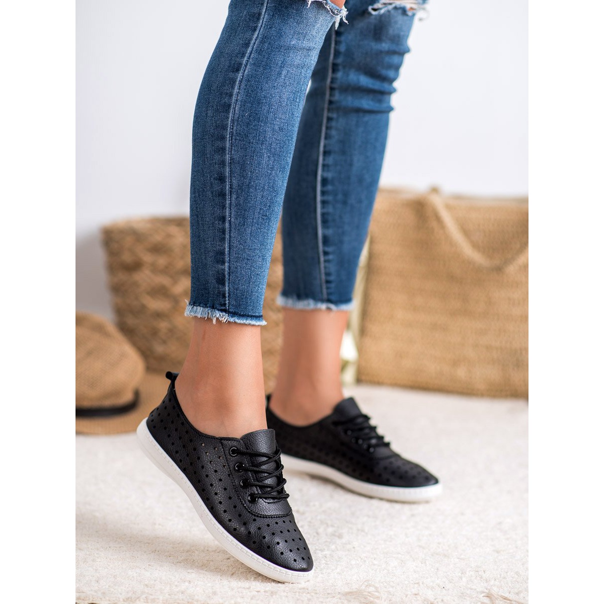 Näissä matalissa kengissä on kulutuspinnalla varustettu kumipohja, joka lisää niiden pitoa, ja 2 cm:n alustakorkeus tekee jokaisesta askeleesta mukavan ja varman. Valitsemalla SHELOVET Openwork Sneakers -lenkkarit, valitset urheilullisen ja rennon tyylin, joka sopii täydellisesti jokaiseen arkeen niin keväällä, kesällä kuin syksy-talvikaudellakin.