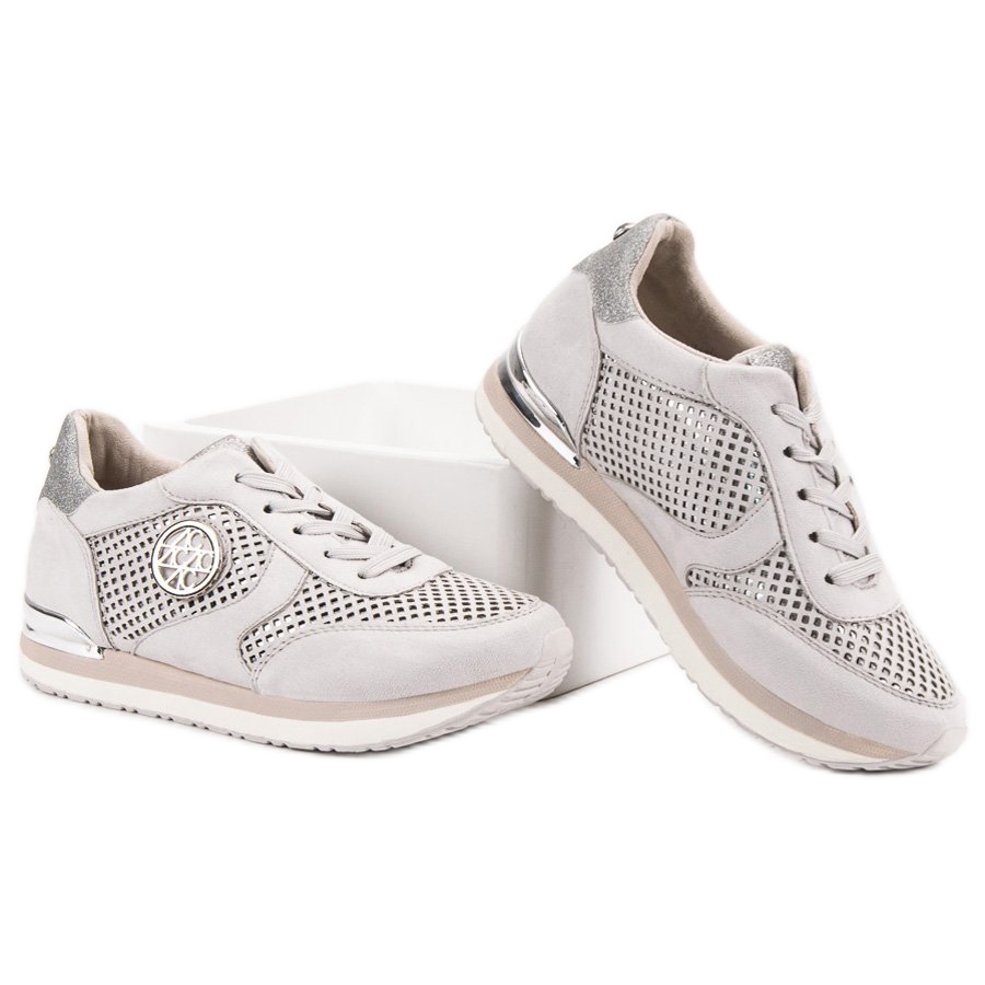Aclys-kengät on suunniteltu naisille, jotka arvostavat urheilullisen rennon yhdistelmää tyylikkään ilmeen kanssa. Niiden harmaasävyt yhdistettynä valkoisiin ja herkkiin glitter-aksenteihin tekevät niistä täydellisesti yhteensopivia eri vaatekaappien kanssa - farkuista urheilumekkoihin.