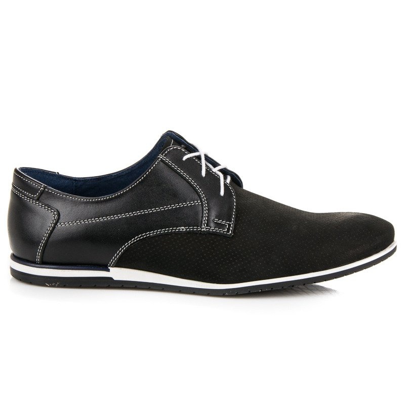 Tyylikkäät ja yleismaailmalliset mustat LUCCA-kengät ovat tarjous miehille, jotka arvostavat klassista tyyliä ja ripaus urheilullista rentoa. Valmistettu luonnollisesta nahasta - sekä ulkoa että sisältä - ne takaavat käyttömukavuuden ja elegantin ulkonäön. Harjakattoinen päällinen lisää keveyttä ja parantaa jalkojen tuuletusta, ja kontrastivärinen valkoinen pohja korostaa mallin nuorekasta, rennon luonnetta. Nauhakiinnitys varmistaa hyvän istuvuuden, ja pyöreä kärki ja 2 cm korkeus takaavat mukavuuden koko päivän ajan.