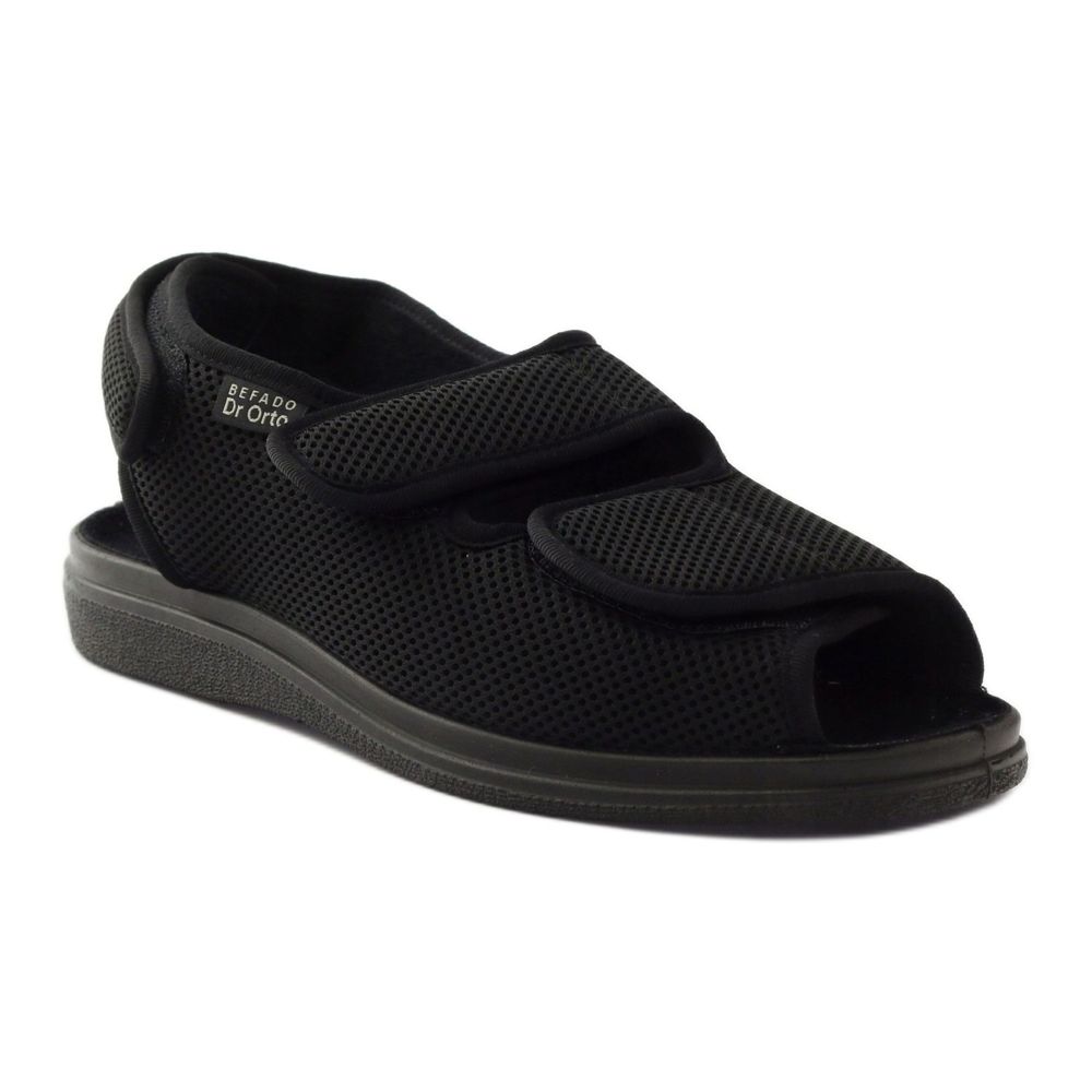Tutustu mukavuuteen ja terveyteen mustilla Befado 733M007 Dr.Orto -terveyssandaaleilla. Nämä tunnetun puolalaisen Befadon innovatiiviset tekstiilisandaalit ovat ihanteellinen ratkaisu ihmisille, jotka arvostavat mukavuutta ja tukea jaloilleen.