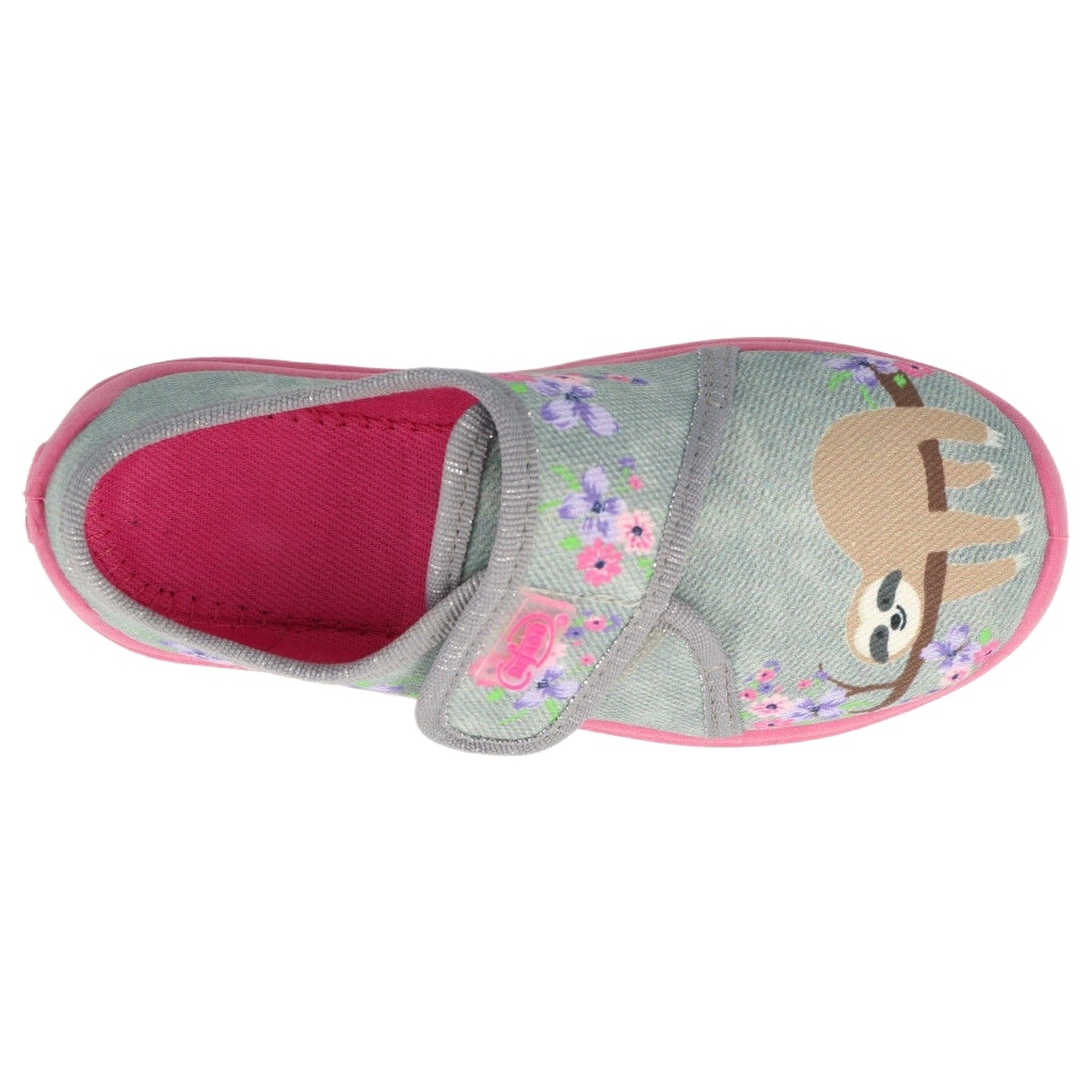 Befadon lasten tossut 560x171 - mukavuus ja vakaus pienille jaloille. Hieno kangas viehättävässä vaaleanpunaisessa harmaassa värivärissä tarjoaa tytöille esteettisen ulkonäön, ja huomaavainen muotoilu keskittyy mukavuuteen. Jäykkä kantapää vakauttaa kantapään tukemaan jalan oikeaa asetusta kävellessä, kun taas käytännöllinen tarranauha mahdollistaa jalkineiden nopean ja kätevän istuvuuden.