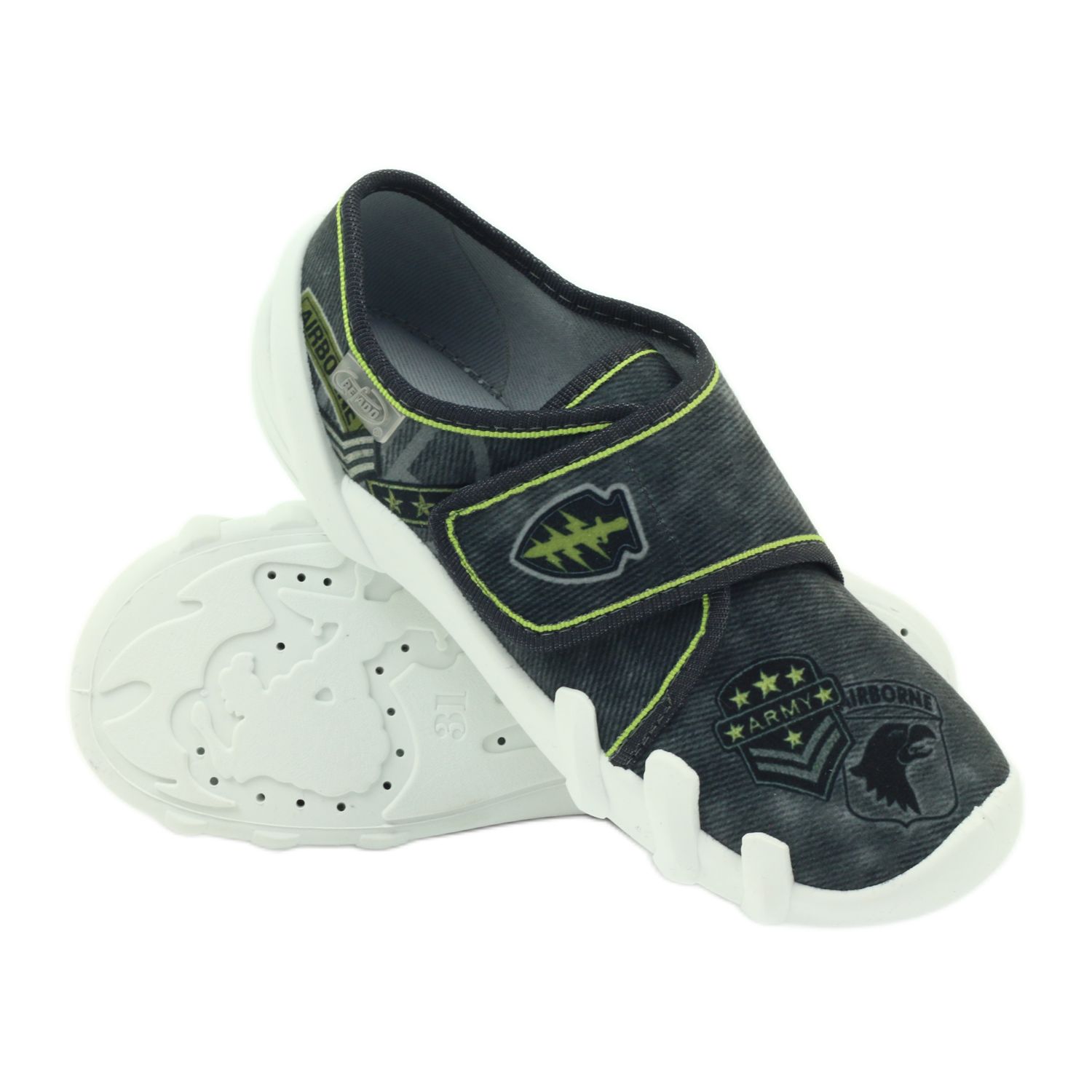 Löydä täydelliset tossut lapsellesi - Befado malli 273Y241 ARMY AIRBORNE. Nämä erittäin toimivat lenkkarit mustana, harmaana ja vihreänä ovat täydellinen yhdistelmä mukavuutta ja muodikasta muotoilua. Soft-B-järjestelmän ansiosta ne lisäävät kävelymukavuutta ja suojaavat tehokkaasti jalkoja epätasaisessa maastossa, vaimentavat mikroiskuja ja vähentävät jalkojen painetta.