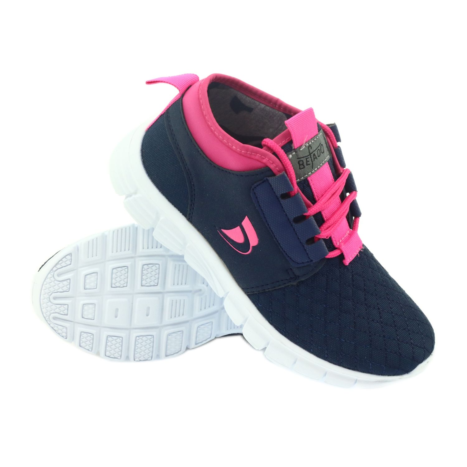 Laivastonsiniset Befado 516Y034 nauhalliset urheilukengät vaaleanpunaisilla yksityiskohdilla ovat täydellinen valinta kaikille pienille tytöille. Modernin muotoilunsa ja laadukkaan työstönsä ansiosta nämä kengät ovat täydellinen kumppani niin päiväkodissa kuin ulkona leikkiessä.