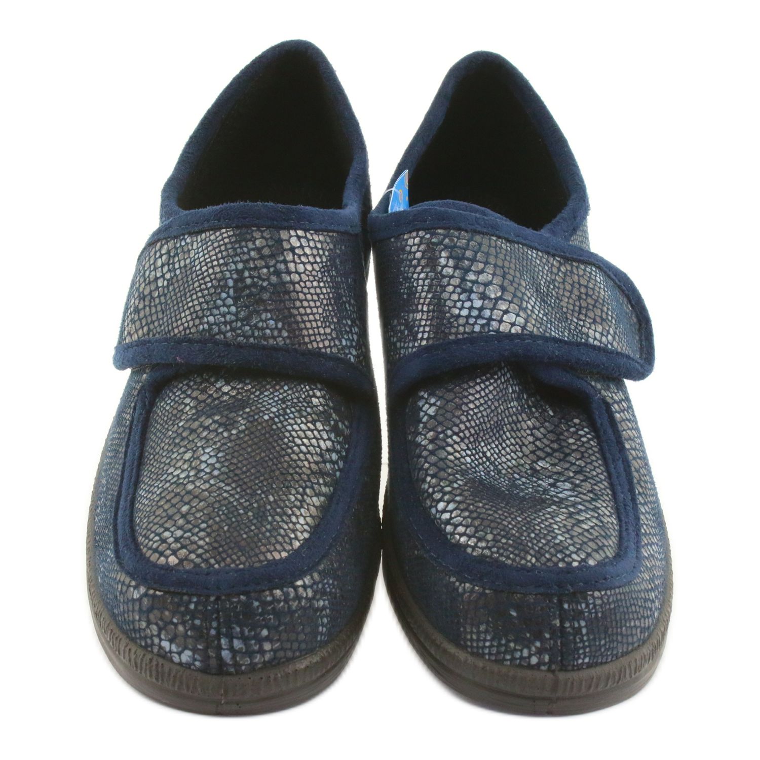 Täältä löydät tyylikkäät ja toimivat laivastonsiniset Befado pu 984D015 naisten kengät, jotka sopivat täydellisesti niin kotiin kuin arkipäivän ulkoiluun. Päällisen joustavan, joustavan materiaalin ansiosta tossut mukautuvat jalan muotoon, mikä on erityisen tärkeää ihmisille, joilla on terveysongelmia, kuten jalan epämuodostumia.
