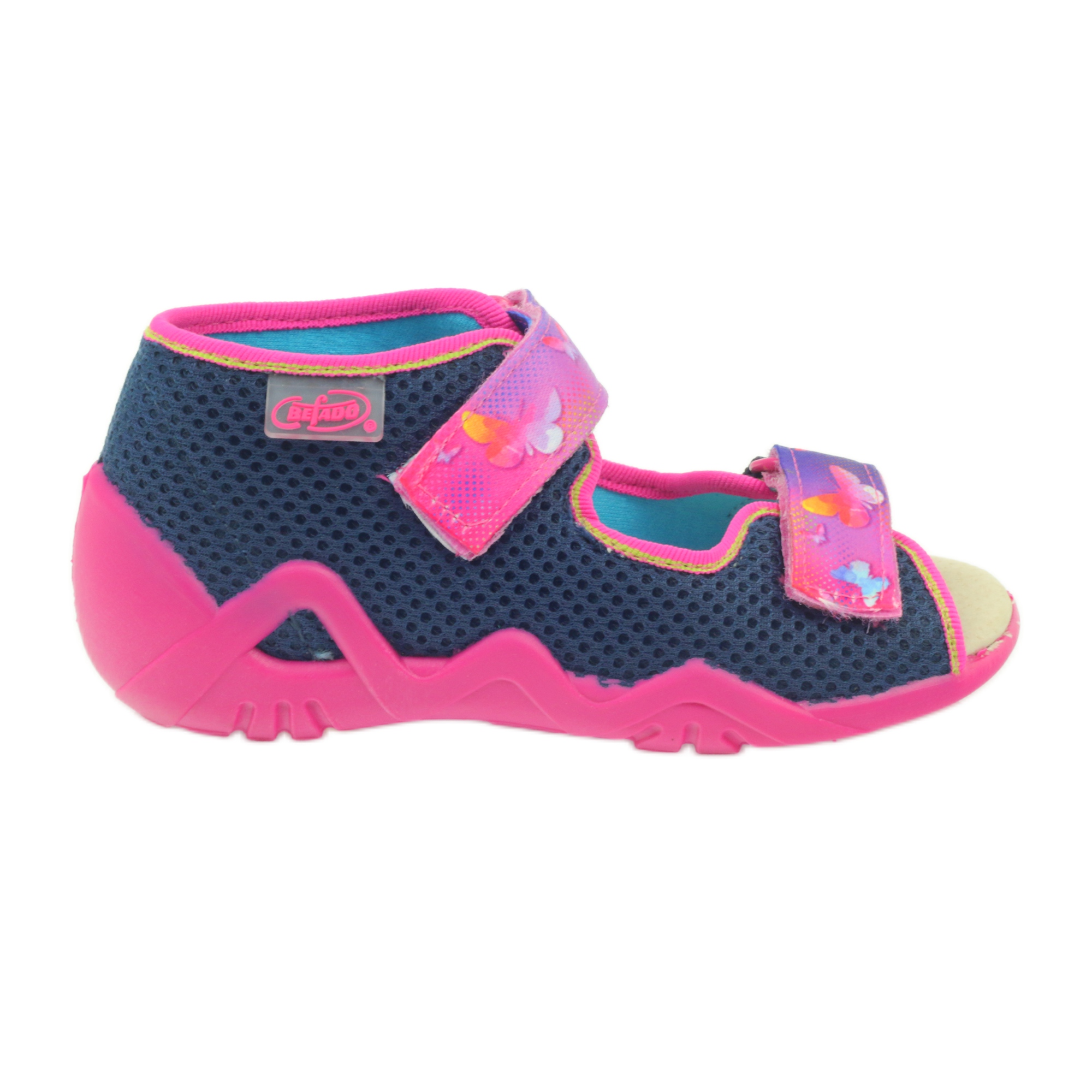 Befado mallin sandaalit. 242P064 on täydellinen valinta jokaiselle pienelle tytölle, joka arvostaa mukavuutta ja tyyliä. Nämä tossut on valmistettu korkealaatuisista laivastonsinisistä kankaista söpöillä perhosilla, ja ne sopivat täydellisesti sekä sisä- että ulkokäyttöön.