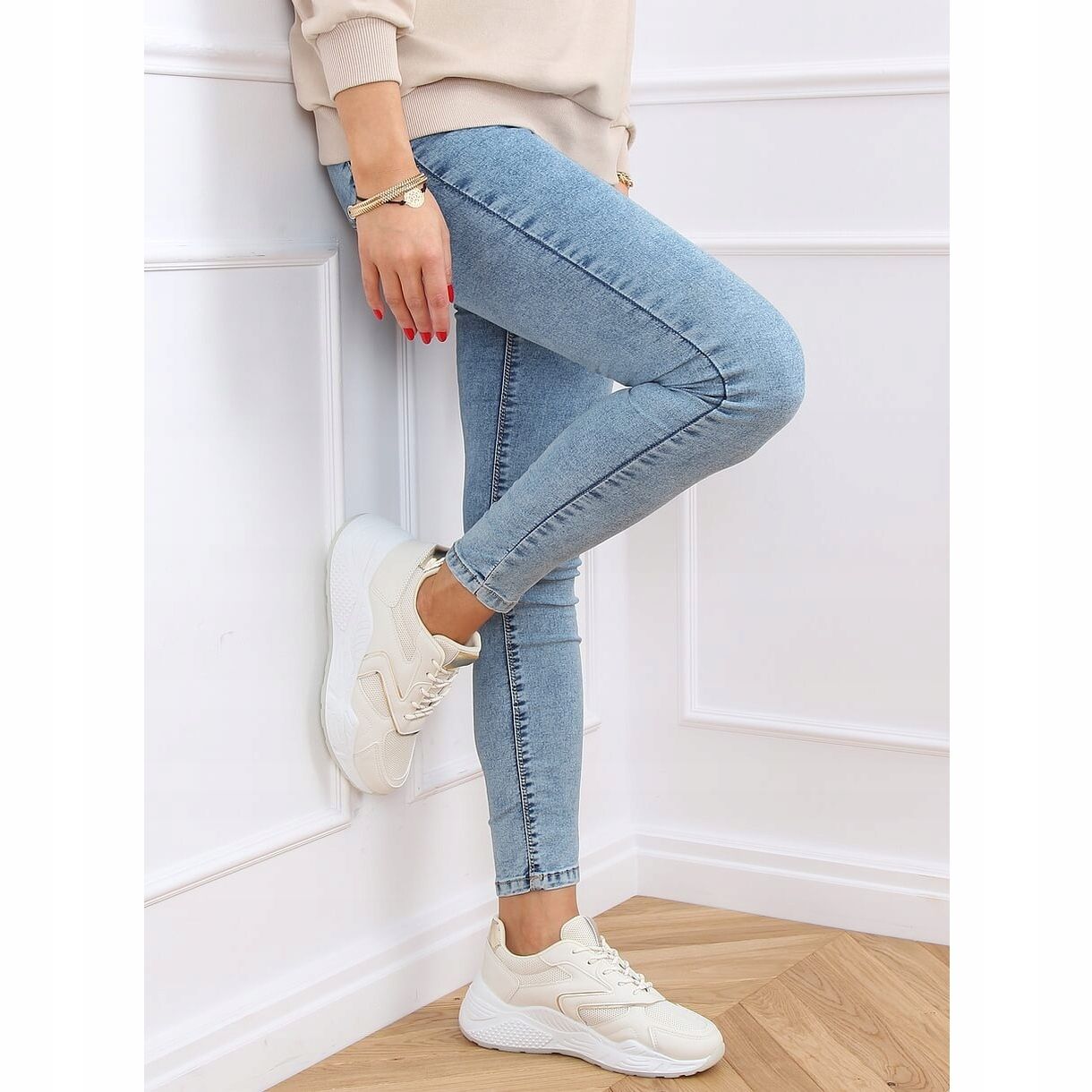 Beige urheilujalkineet GB-003 Beige ovat avain tyylikkääseen ja mukavaan arkeen jokaiselle naiselle, joka keskittyy raikkaaseen ja omaperäiseen lookiin mukavuudesta tinkimättä.