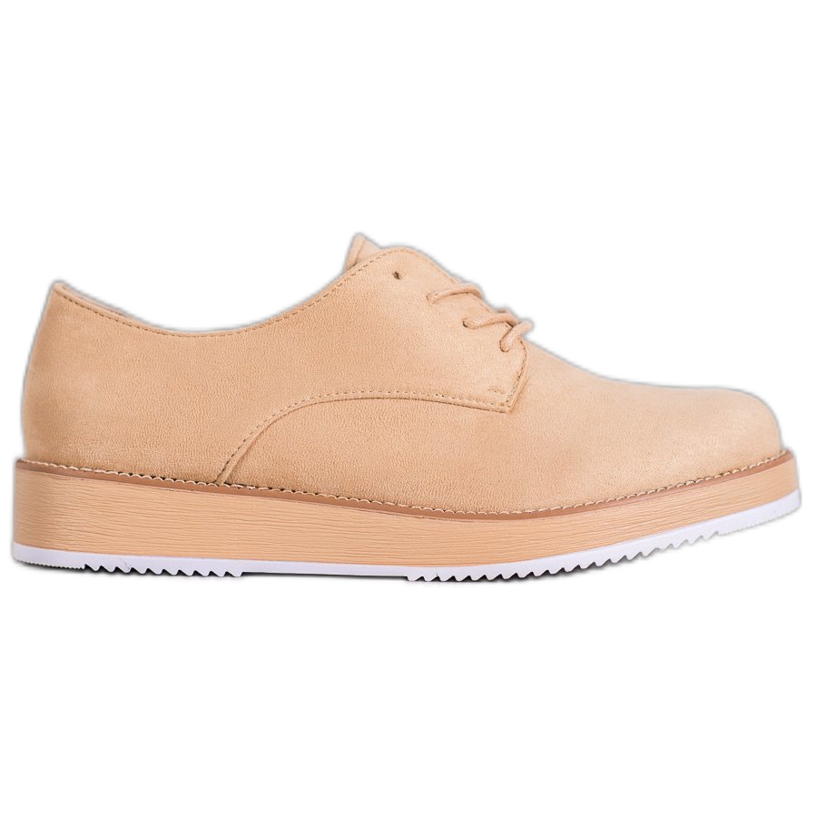 Nämä laadukkaista materiaaleista valmistetut vaaleanruskeat kengät ovat kestäviä ja takaavat pitkäikäisen käytön myös intensiivisessä käytössä. Kenkien ulkokerros on valmistettu ekologisesta mokkanahkasta, kun taas sisäpuoli on vuorattu ekologisella nahalla, mikä takaa mukavuuden ja käyttömukavuuden koko päivän.