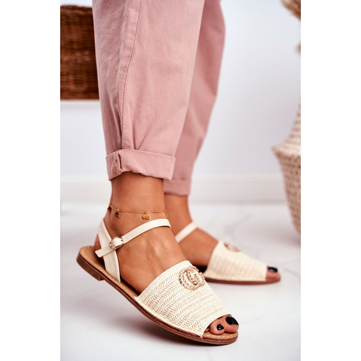 LU BOO Beige naisten litteät sandaalit Lu Boo punottu Felicia