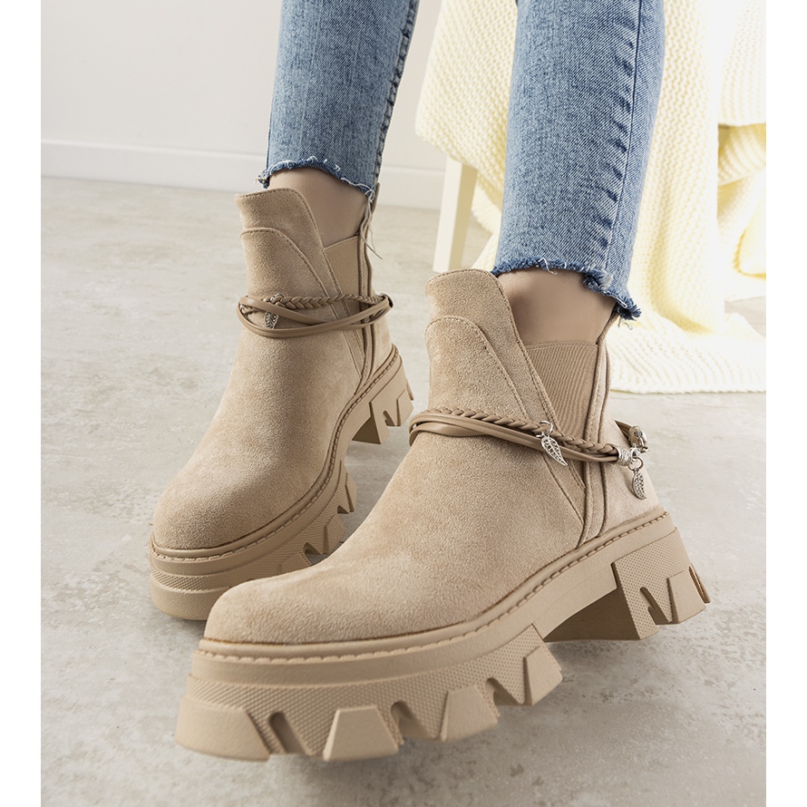 Löydä beige-saappaiden ainutlaatuinen viehätys Fearless-rannekorulla, joka on täydellinen lisä kaikkiin syksyn ja talven tyyliin. Nämä ainutlaatuiset nilkkurit, jotka on valmistettu ympäristöystävällisestä mokkanahkasta, yhdistävät eleganssia ja mukavuutta ja tarjoavat pyöreän kärjen, jossa on hieman ahdistunut vaikutus ja luovat yksilöllisen tyylin.