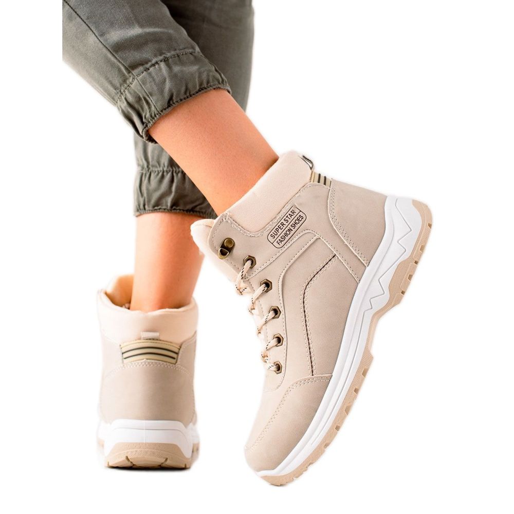 Beigen värin ansiosta nämä saappaat on helppo yhdistää erilaisiin tyyleihin - rento ja urheilullinen. Kiinnitysnauha mahdollistaa täydellisen istuvuuden, ja tekstiilisisäke lisää pehmeyttä ja mukavuutta. TRENDI-lenkkarit ovat jokaisen naisten kenkämalliston välttämättömyys, mikä tekee jokaisesta askeleesta kevyen ja miellyttävän. Tutustu niihin jo tänään ja nauti tyylin, mukavuuden ja toimivuuden yhdistelmästä!