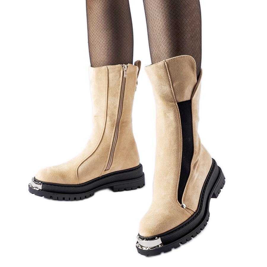Elegant beige Bologna -saappaat yhdistävät muodikkaan viimeistelyn käytännöllisillä ratkaisuilla. Koristeellinen, pyöreä nenä antaa heille luonteen, ja pyöristetty muoto varmistaa mukavuuden. Yläosan nilkan (28,5 cm) ja sisäisen eristyksen korkeus pitävät jalan lämpöä, jonka ansiosta he työskentelevät syksyllä talven kauden aikana. Vetoketjun nostetut saappaat helpottavat laittaa ja nousua nopeasti, ja 5 cm: n kantapää korostaa lukua luopumatta vakaudesta.