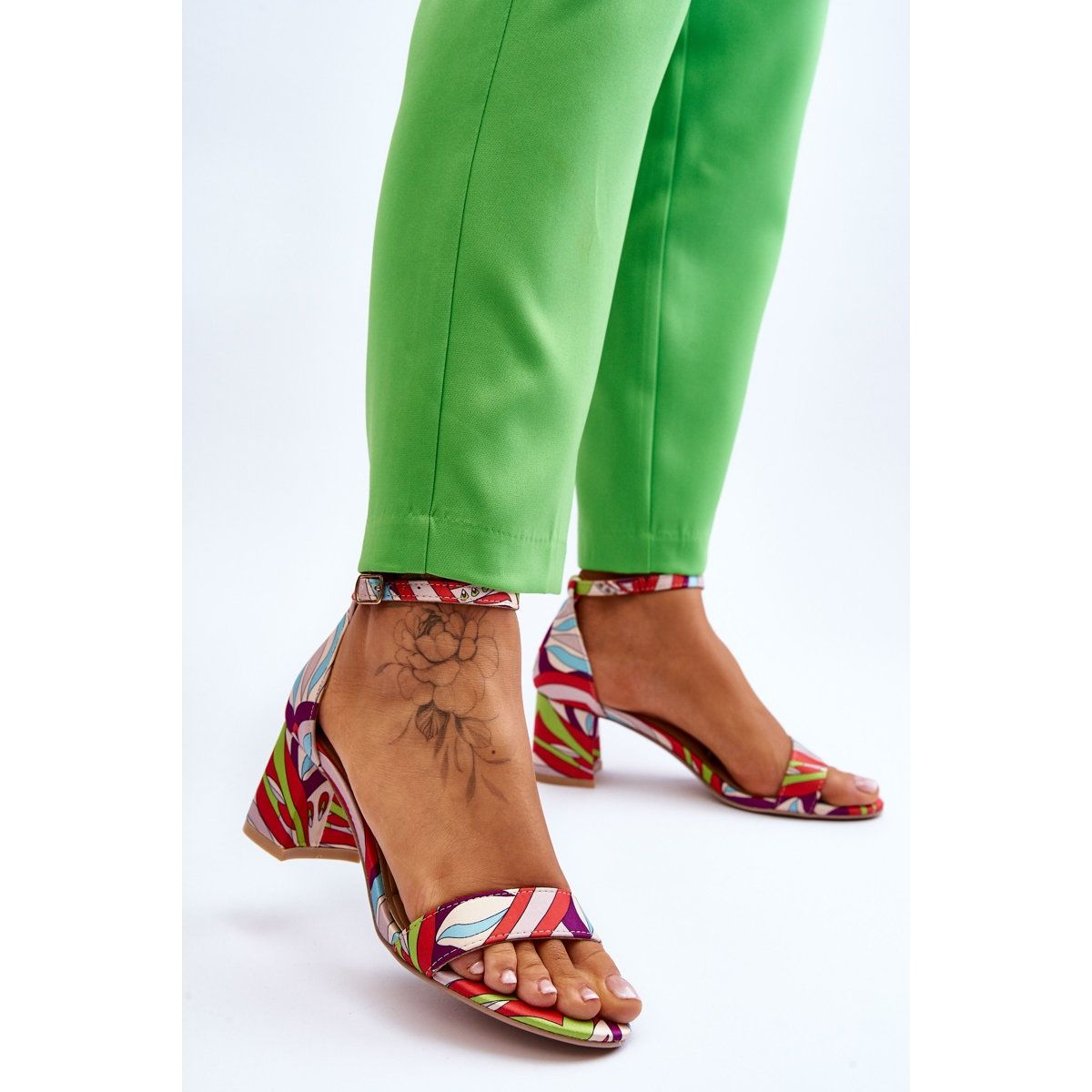 Sandaalit on varustettu jäykistetyllä kantapäällä ja säädettävällä olkahihnalla, joka on kiinnitetty nilkan ympärille, mikä varmistaa vakauden ja käyttömukavuuden. Avoin, pyöristetty kärki lisää hienovaraisuutta ja ekonahkapohjallinen takaa mukavuuden pitkässäkin käytössä.