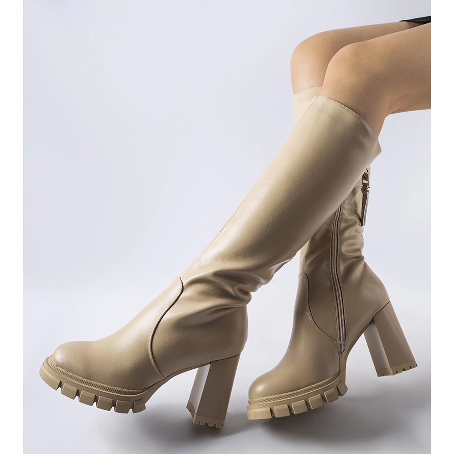 Beige, pitkät saappaat GD-FL3031-yhdistelmässä eleganssia ja toiminnallisuutta, joka on ihanteellinen syksyn talvi-kaudelle. Klassinen leikkaus ulottuu polveen (kengän korkeus 49 cm) pyöristetyllä nenällä ja 9 cm: n vakaa kantapää postitse lisää tyyliä samalla kun varmistaa mukavuuden ja varmuuden portaista. Eristetty muotoilu tekee saappaat suojaamaan täydellisesti kylmiltä, ja sivulukko helpottaa laittaa ja nousta.