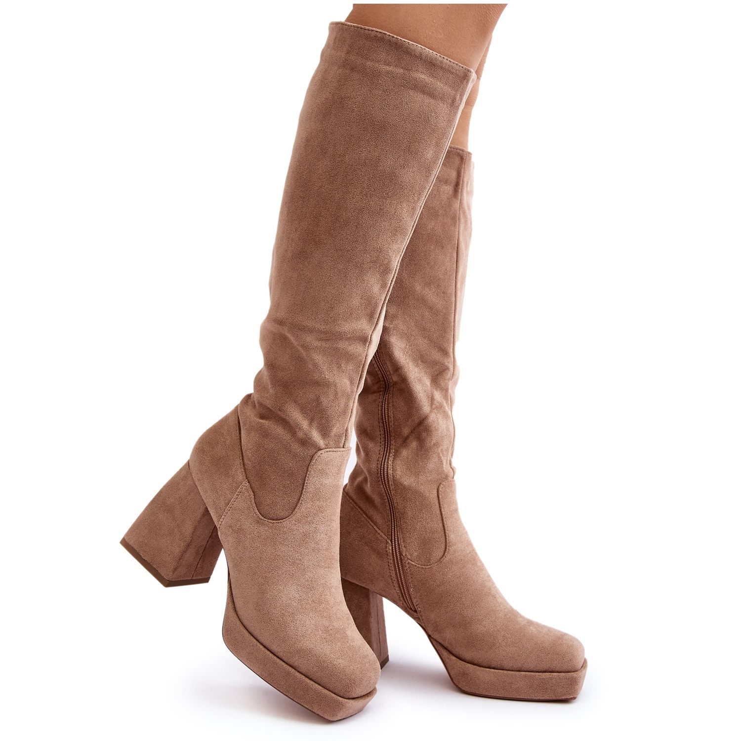 Yksityiskohdat: Beiget Layala naisten eristetyt saappaat massiivisilla koroilla